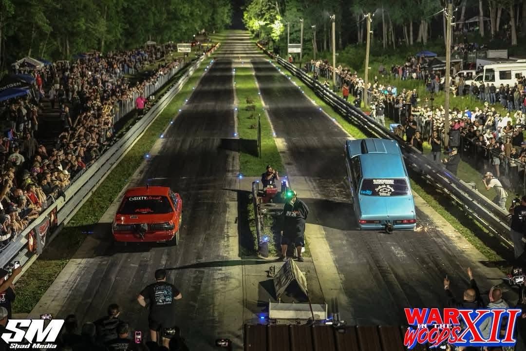 What’s the deal? War in the Woods is a wild, no-prep race in Morgantown, Indiana, with a rough track, muddy pits, and a straight-up street-racing vibe. It’s a party—think campfires, music, and garage-built hot rods tearing it up.