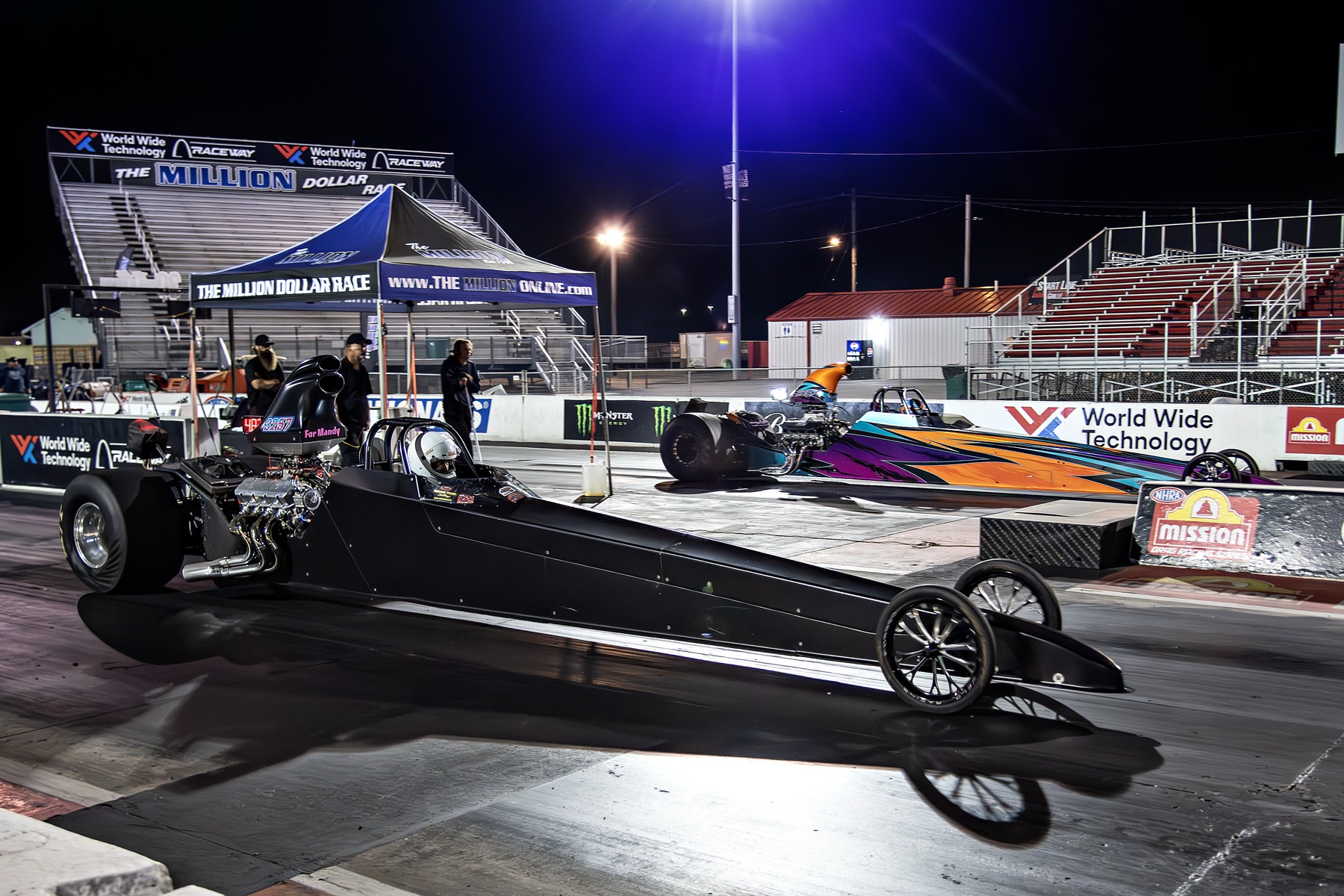 The biggest buzz at every Million Dollar Drag Race? What’s the big split! At this year’s 30th Annual Mickey Thompson event-the OG Million-racers in the final rounds, sometimes twenty-plus cars, huddle to hash out the purse.