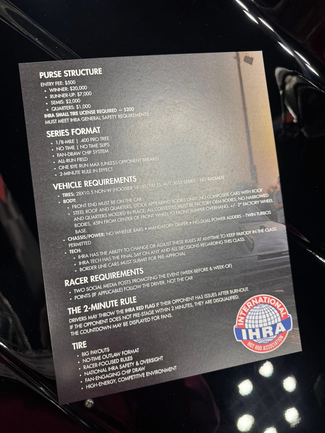 • IHRA Small Tire license required