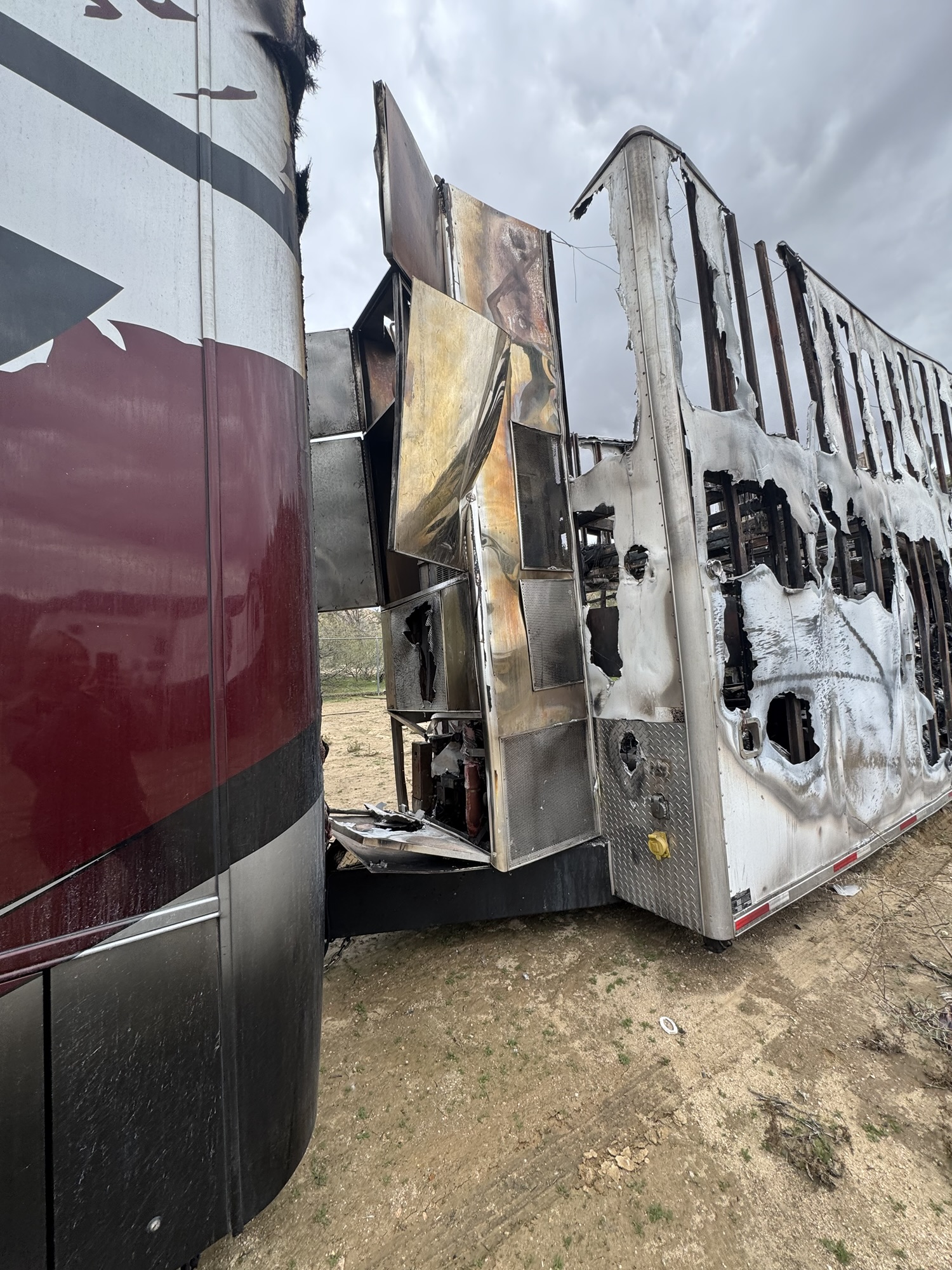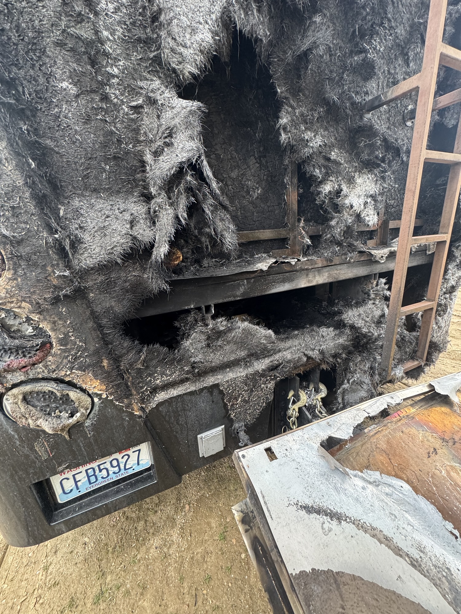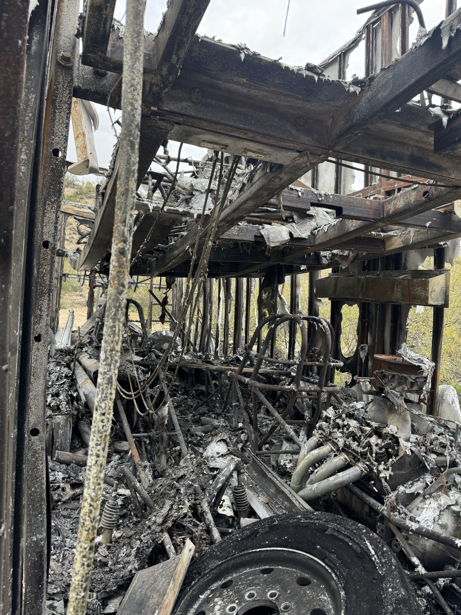 Moments later, Thompson learned the truth. His stacker trailer was fully involved. By the time he arrived between Wikieup and Wickenburg, Arizona, the scene was already over.