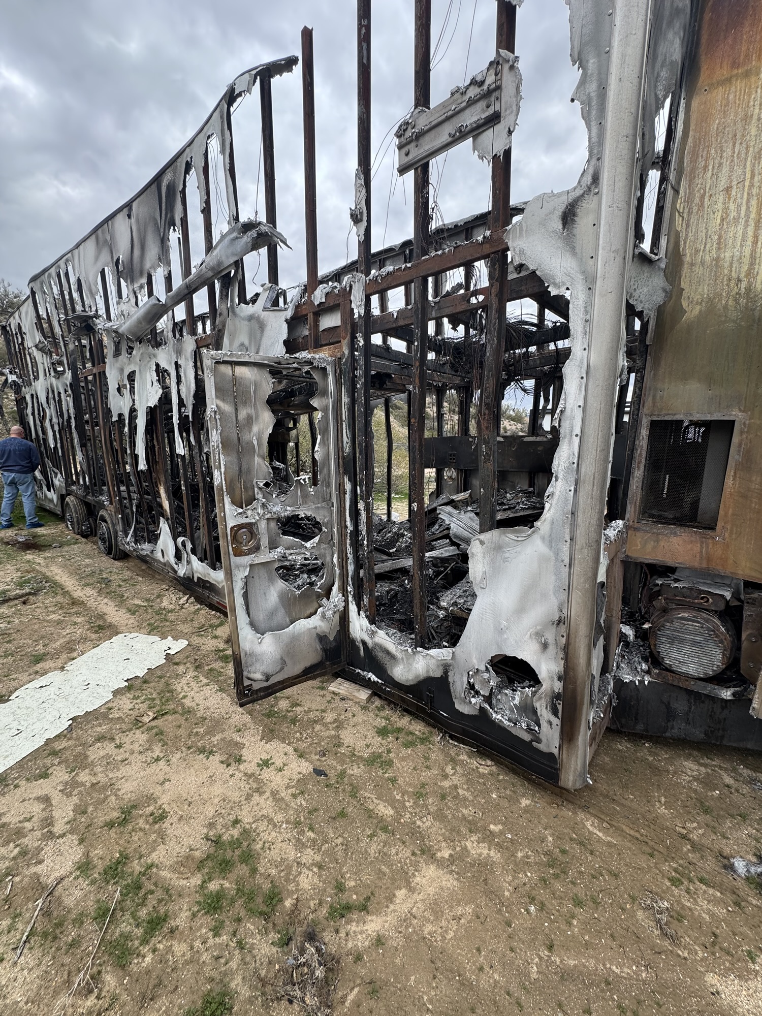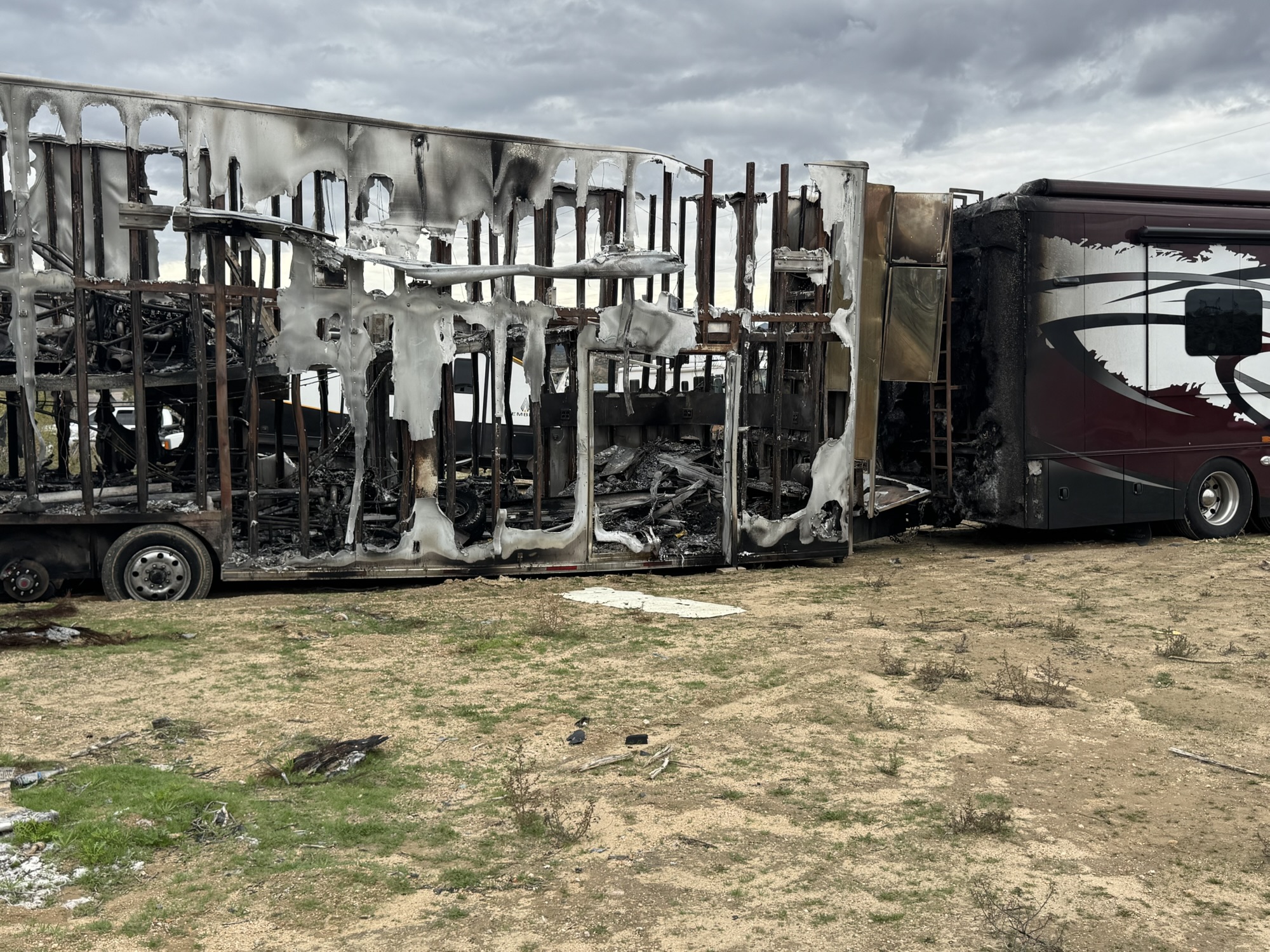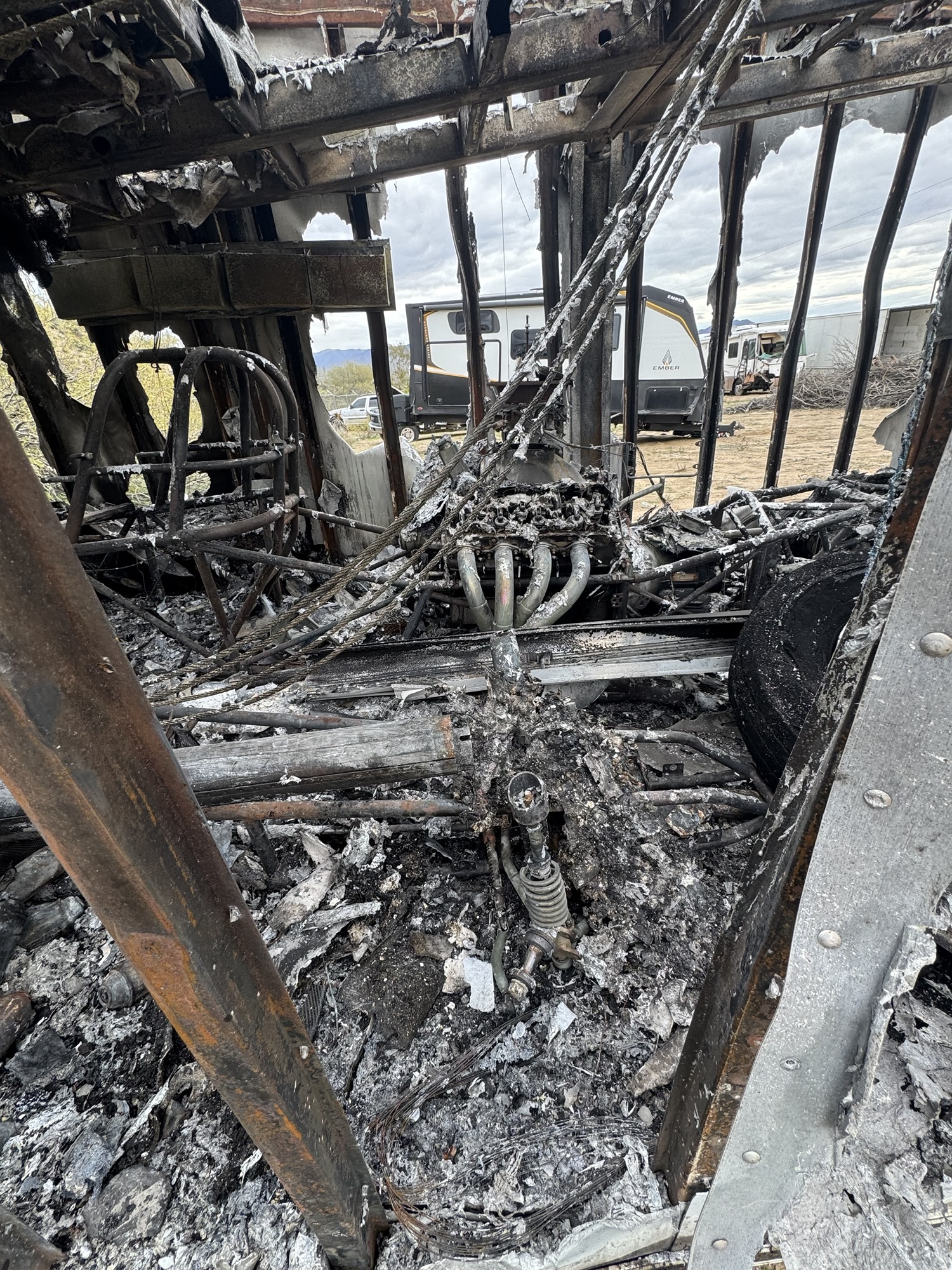 Moments later, Thompson learned the truth. His stacker trailer was fully involved. By the time he arrived between Wikieup and Wickenburg, Arizona, the scene was already over.