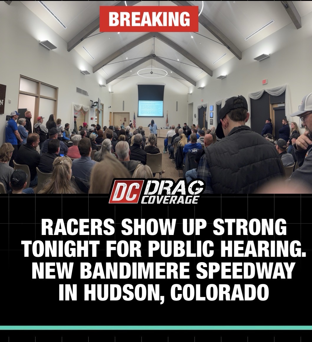 The racing community made its presence felt at Hudson Town Hall as a large crowd gathered for the public hearing — the annexation and zoning proposal tied to what is planned to become Hudson Motorsports, the new Bandimere Speedway. Racers, crew members, and supporters stood shoulder-to-shoulder with local residents, showing just how much this project means to Colorado motorsports.