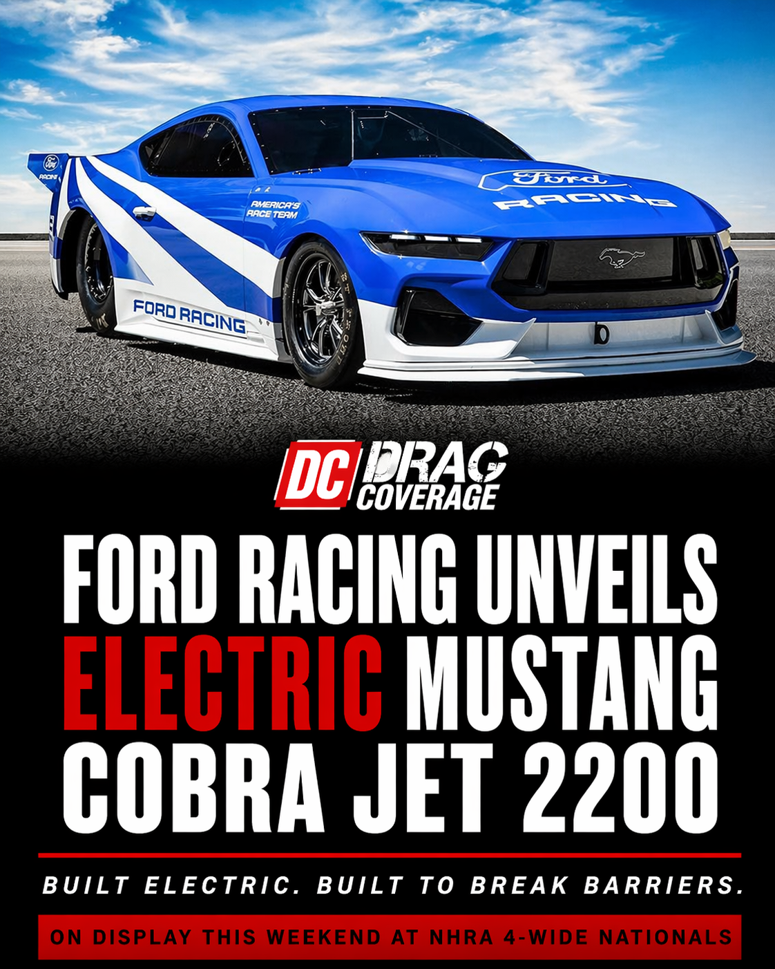 Fans will get a firsthand look at the Cobra Jet 2200 this weekend at the NHRA 4-Wide Nationals in Charlotte, where it will be on display. Whether you’re a traditionalist or someone excited about the evolution of the sport, one thing is clear—technology is changing the game. The question now isn’t if electric cars will impact drag racing… it’s how far they’ll go.